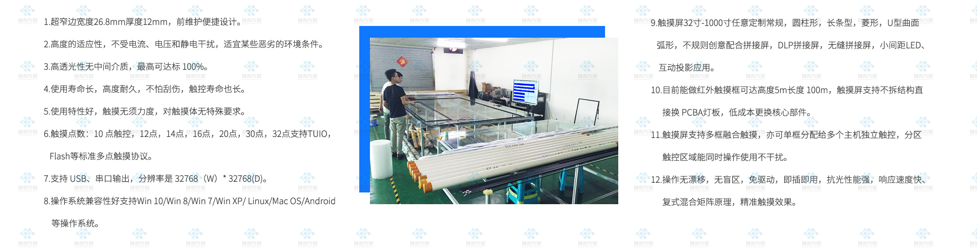 融創(chuàng)方圓55寸2×2拼接觸摸屏入駐深圳某產(chǎn)業(yè)園大廳主要用來可視化數(shù)據(jù)集中顯示互動觸摸屏需求。 55寸2×2拼接觸摸屏對角線為110寸拼接大顯示觸摸屏,...